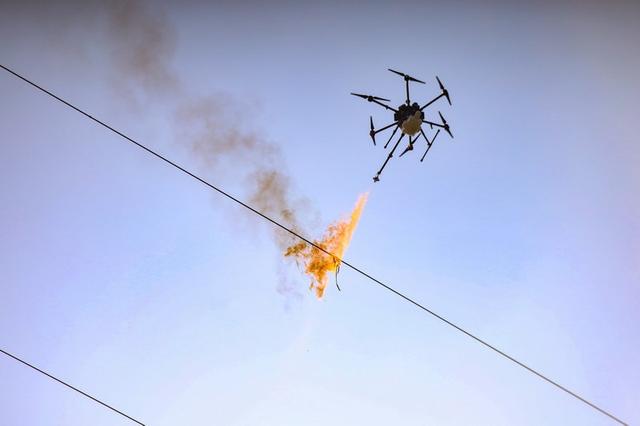 “往左,然后往左,噴火!”5月12日下午,在雅安市雨城區三雅苑廣場,國家電網雅安電力(集團)公司專業飛行巡邏隊成員齊心協力,用噴火無人機清理廣場上...